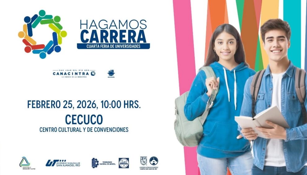 Si estás pensando en dar el siguiente paso en tu formación profesional, apunta esta fecha: 25 de febrero. La Universidad Tecnológica de San Juan del Río, junto con CANACINTRA municipal, prepara la Cuarta Feria de Universidades «Hagamos Carrera», un espacio donde los estudiantes podrán acercarse a 30 instituciones de educación superior públicas y privadas.