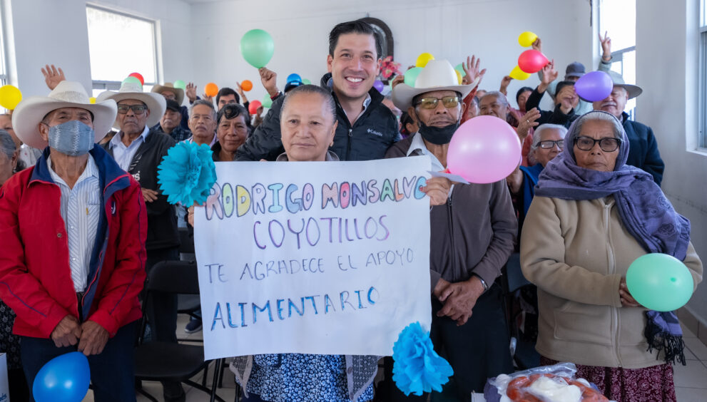 El alcalde Rodrigo Monsalvo Castelán se lanzó a recorrer varias comunidades para entregar despensas a adultos mayores, como parte del programa que impulsa el SMDIF.